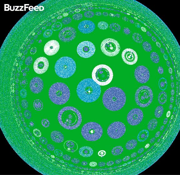 This petri dish-looking thing below is really is a graphic depiction of network diffusion, where the dark blue areas are Facebook, the light blue areas are Twitter and the white areas are links.