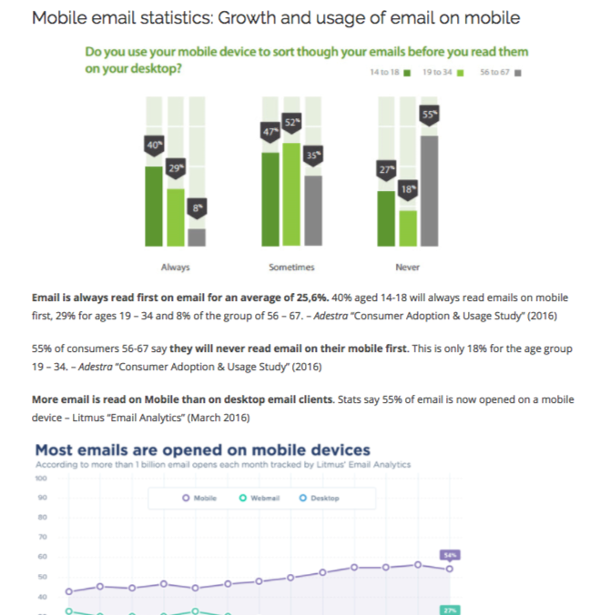 Your list doesn’t need to be as broad as the HubSpot example, which covers a wide range of marketing topics. A curated list around a more granular topic can work, too, such as this page filled with mobile email statistics (550 RDs).