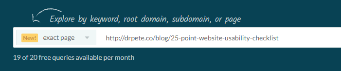 Before we begin, I'm going to jump to the end. You may know that we recently launched Keywords By Site in Keyword Explorer, which allows you to peer into a keyword "universe" of millions of searches to see how a given domain is ranking. What you may not know is that you can also look up a specific page with the "Exact Page" filter. Go to the Keyword Explorer home page, and it's the last entry in the pull-down: