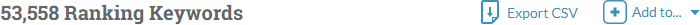 So, how does a keyword list help us to better understand our content? Above the keyword table, you'll see two options, "Export CSV" and "Add to...":