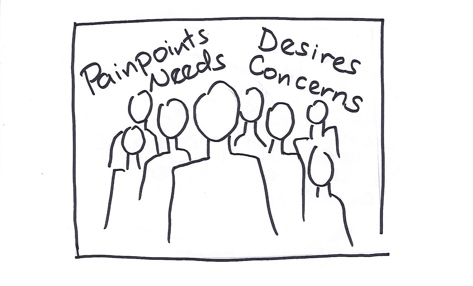 If you’re lucky, you’ll have some research or set personas to use. If you aren’t, make do. The point isn’t to get hung up on idealizing your audience, or nailing down that brand of tofu sausage they like. The point is to nail down their pain points and desires and move on.