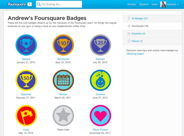 Just putting links to share a page on Twitter or like an app on Facebook isn't enough these days, there's got to be more of an incentive for a user to share your site. The best integrations of social sharing come in the context of the application. For example, when a user achieves a certain milestone or unlocks a certain badge, they're presented with an option to share that achievement publicly. Perhaps the best, and most well-known example of a company that does this beautifully is Foursquare. When you unlock a badge, you're presented with the option to share that achievement socially. A great way to boost your ego, and an even better way to drive brand impressions for Foursquare.