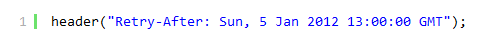 The first two lines tell us that it is a 503 status code, and the last line is used to tell when the website is expected to be online again. Google understands this message, so it is possible to tell Google when to visit the website again. You must either provide a number (seconds) or a date. If you live in Denmark like I do and you expect to return on the 5th of January 2012, at 14:00, you must put down: