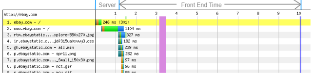 You can see the Performance Golden Rule well illustrated in a typical waterfall chart returned by tools like WebPageTest. Note how the original page requested is a very small subset of the overall time. Generating this original base page is where all the back-end server work is done. However, all the other resources included by that page (images, CSS, etc.) are what take the large majority of the time to load: