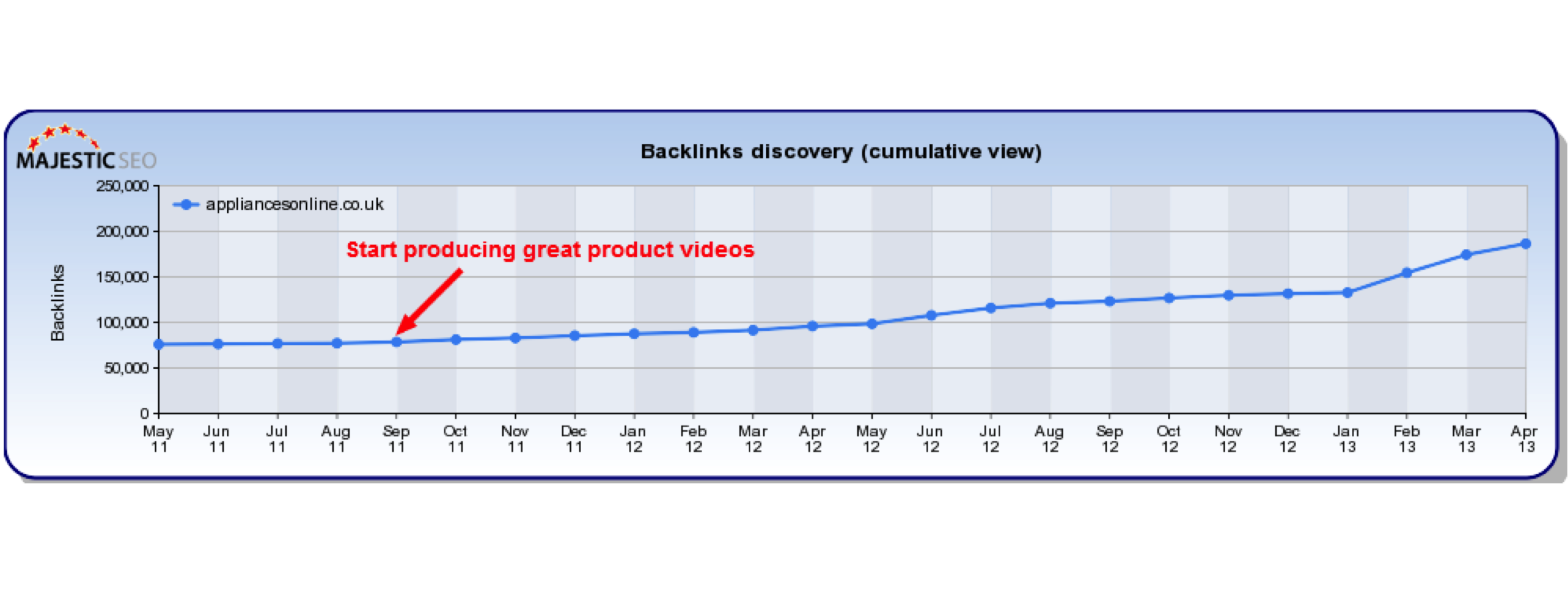 Check out the screenshots from the Majestic Historic Index below for appliances online and Zappos — sites that have both invested heavily in product video to improve their page types: