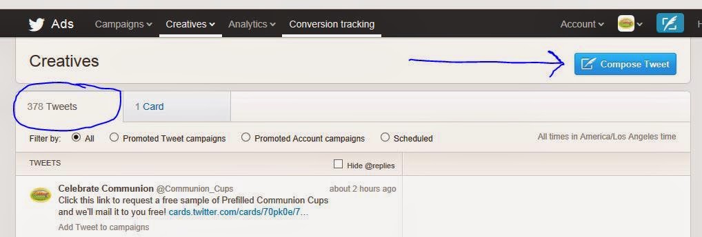 Caveat – You can't compose and publish the Tweet from your regular Twitter admin home page. You have to compose and send the Tweet from inside Twitter Ads. Here's how you do it: