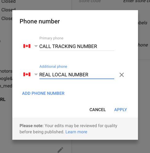 Fire up your call tracking platform once more, create an “offline” number, and use it as your “primary number” on your GMB listing. Don’t panic. You can preserve your NAP consistency by demoting your real local number to an “additional number” slot on your GMB listing.