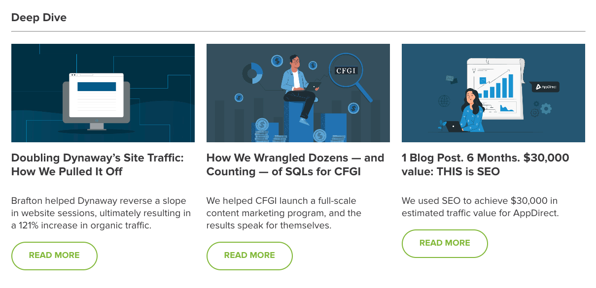 A pillar page is a great tactic if you’ve got a lot of existing blog content all focused on a particular parent topic. It’s one of our favorite ways at Brafton to repurpose and repromote our blogs.