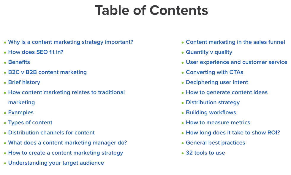 We built our content marketing guide as a pillar page, which allowed us to cover a slew of subtopics related to the broader topic of content marketing, all in one piece of collateral.