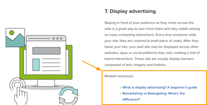 Then, throughout the page, we offer readers the opportunity to go deeper and learn more about each subtopic by linking to relevant blog content: