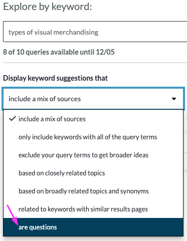 - Using a keyword research tool to show you queries related to your main keyword that are questions.