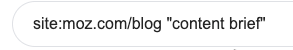 For example, the following search would show me all posts on the Moz blog that mention “content brief.” These could be great sources of links to this blog post.