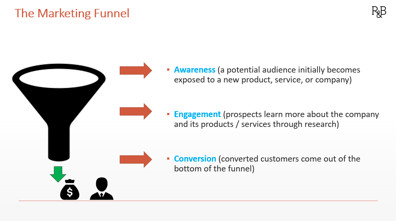 From there, some prospects “move down the funnel” as they learn more and get educated about the product or service. Those that don’t move down the funnel and progress in their journey are said to “fall out” of the funnel.