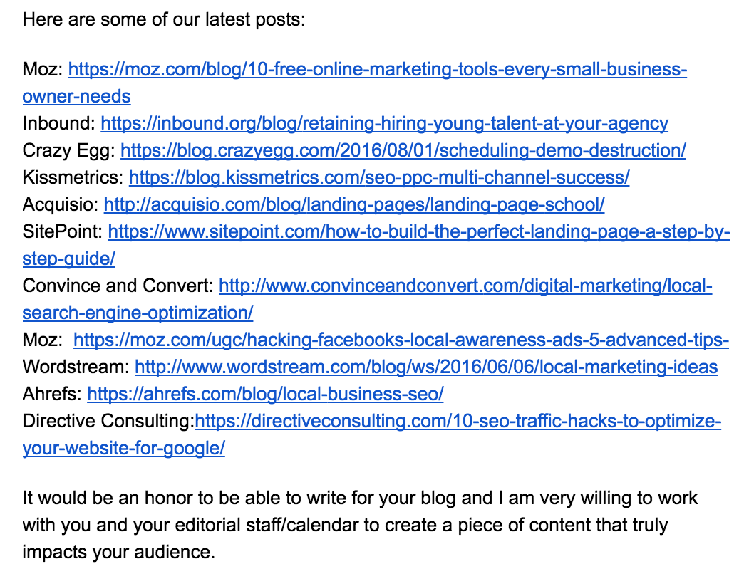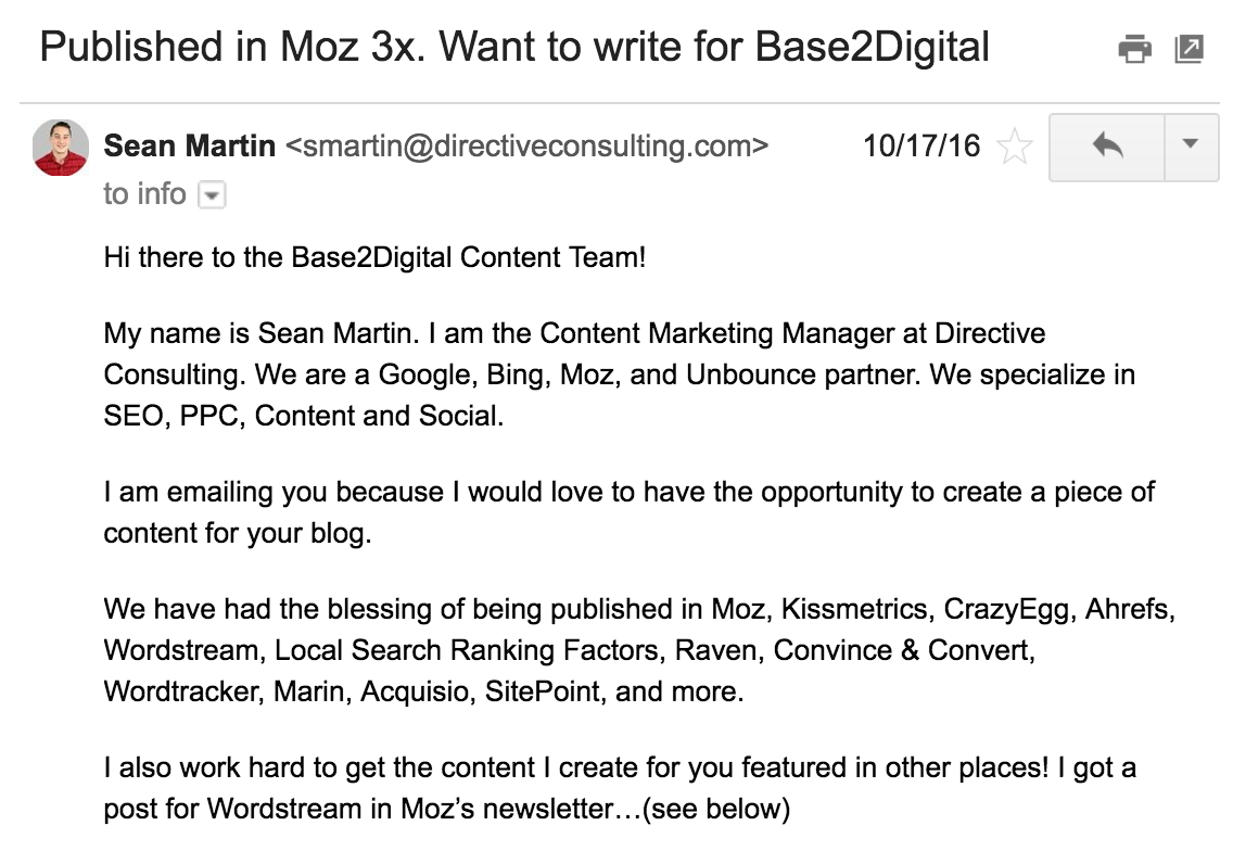 Plenty of professional context, but hardly a personalized first impression. This user-experience screams BLOGGER TRYING TO GET GUEST BLOG OPPORTUNITY.