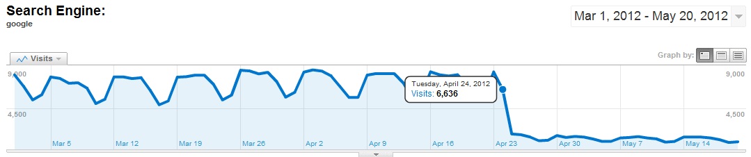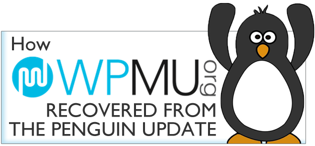 On April 24th, 2012, WPMU.org was hit by the Penguin Update. Traffic from Google dropped over 81% week over week, causing a real, massive hit in revenue for the business over night. This was not the "three or four spots" Google Penguin drop, this was the "almost disappear completely" type Penguin hit that was among the worst kind of impact most websites felt - and for the owner, James Farmer, this came as a real, completely unexpected shock.