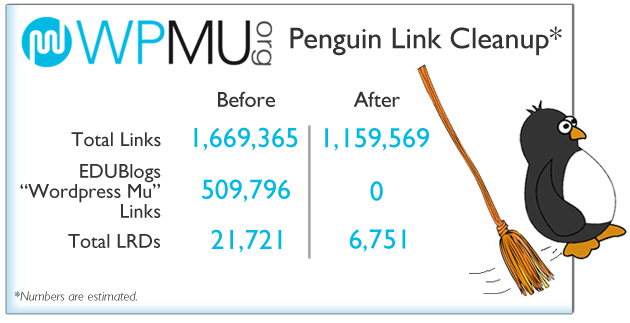 Although Penguin seems to be a link penalty, I would be remiss to only mention the large link-based changes that were made to the site in the month between updates. Farmer and the WPMU team also made the following changes during that time, any, all, or none of which may have made an impact on recovery. I want to clarify, here, that these cleanups were all done by Farmer as overall quality value-adds, and were not Penguin-specific improvement suggestions made by me, although some, many, all, or none of them may have contributed to the recovery.