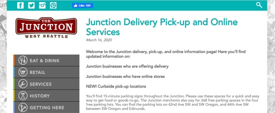 If you don’t want to go it alone in creating a blog, joining with others in a local business association like the West Seattle Junction or Chamber of Commerce will enable many hands to lighten the work. Community hubs like this one are publishing vital information including PSAs, updates on which businesses offer delivery and pickup, and highlighting local merchants. If your neighborhood has platforms like these, contact them to see how you can contribute content. If no such resources exist, contact your neighboring business owners to discuss what you can create together.