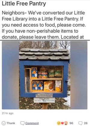 Nextdoor is a particularly lively community hub and this is a very good time to join it as a business. It should go without saying that publishing anything that could seem self-serving would be a poor choice. Instead, take inspiration from the spirit demonstrated in the above example of a neighborhood converting their Little Free Library into a mini dry goods pantry, or this independent restaurant using Nextdoor to offer a discount to anyone in their industry who may have lost their local job. This is a good, ready-do-go platform for outreach to your community.