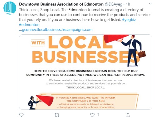 Check out how the Downtown Business Association of Edmonton is using Twitter to promote virtual local events and a new directory they’re building on their website specifically highlighting operational local businesses. The instantaneous communication capacity of Twitter is a resource your company should consider right now, even if you haven’t done much tweeting in the past. Follow and share the content of other local businesses to create a stronger community with timely messaging for the public.