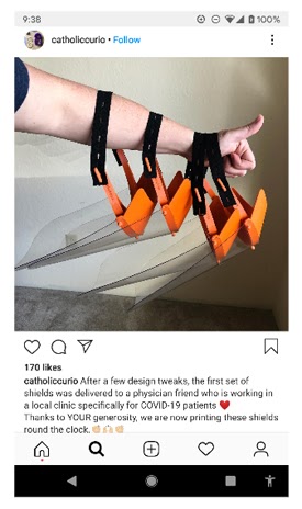 Instagram is proving extremely helpful in alerting communities to offerings and changes, as in this example of a Richland, Washington cookie cutter manufacturer transitioning operations to produce face shields for medical personnel, and providing DIY instructions for anyone with access to a 3D printer.