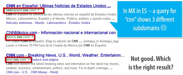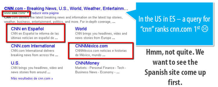 - Mexico.cnn.com is not the right answer for "es" (Spanish language) IMO, because it's the Mexican version and should be annotated as "es-mx" ;)