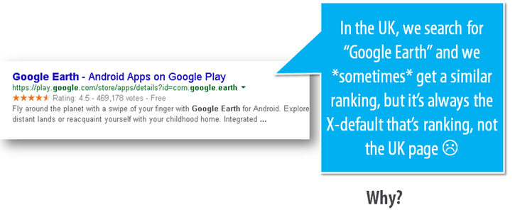 - Replace geo-ranking factors: Just because you rank #1 in the US for "blue widgets" does not mean that your UK "blue widgets page" will rank #1 in the UK.