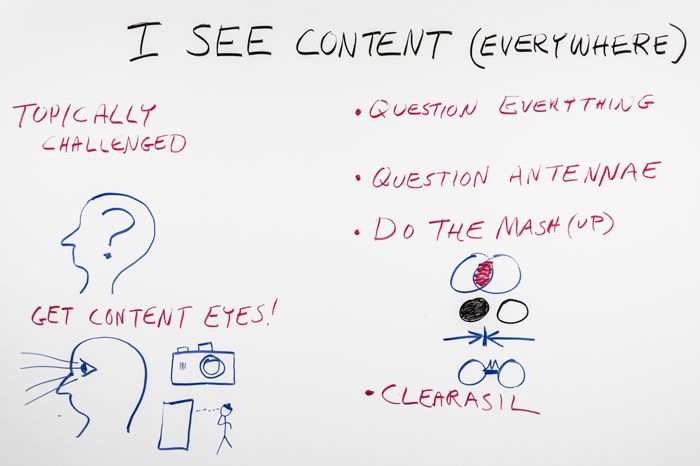 So what I want to do today with the rest of this time is to give you some ways of doing that, some ways that you can look at the other content that you're reading online, or videos you're watching, conversations that you get into, listening to a conference speaker, wherever you are to start to look for that and get those content eyes. So let's break into what those are.