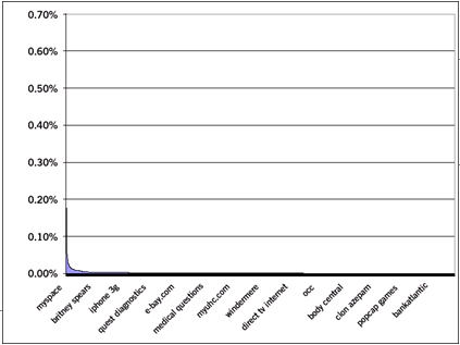 ...the head and body together only account for 3.25% of all search traffic! In fact, the top terms don’t account for much traffic: