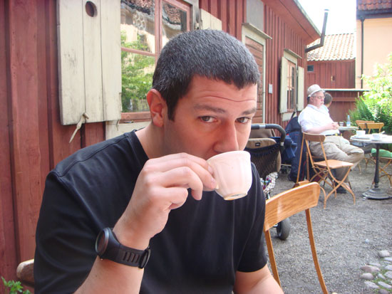 Manstery Guest getting his "fika" on (aka "coffee break"). The Swedes take their coffee very seriously.