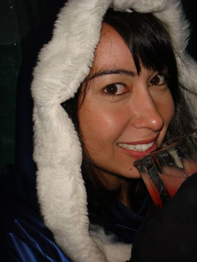 Me looking like a vodka-swilling Eskimo at the Absolut Ice Bar.