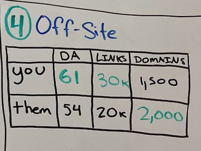 Now I know that off-site is really difficult. Link building is hard, and it takes a long time to really show results. But knowing how you stack up against your competitors, when it comes to Domain Authority and it comes to total links, really helps you get an idea of how hard it's going to be and how long it's going to take to catch up with your competitors in the search engine results page.