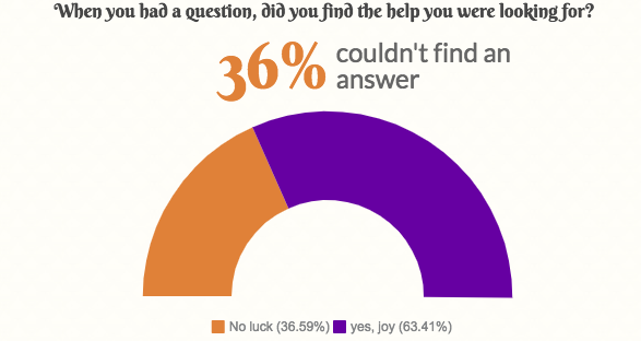 Who is this helping? I’m looking at you, 36% of people who couldn’t find what they were looking for! We’re coming at you from two angles here: people who never found the page they were searching for, and people who did, but couldn’t digest the content.