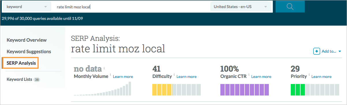 When I saw a big jump in our organic traffic, I entered the MozBar URL into Keyword Explorer to hunt down our ranking keywords. I then added these keywords in my Moz Pro campaign to see how we performed over time.