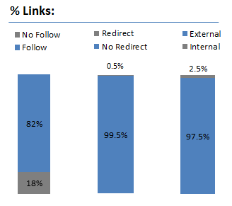 % of links by Follow/No Follow, Redirect and External vs Internal: