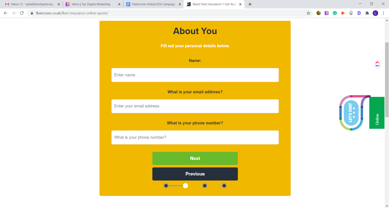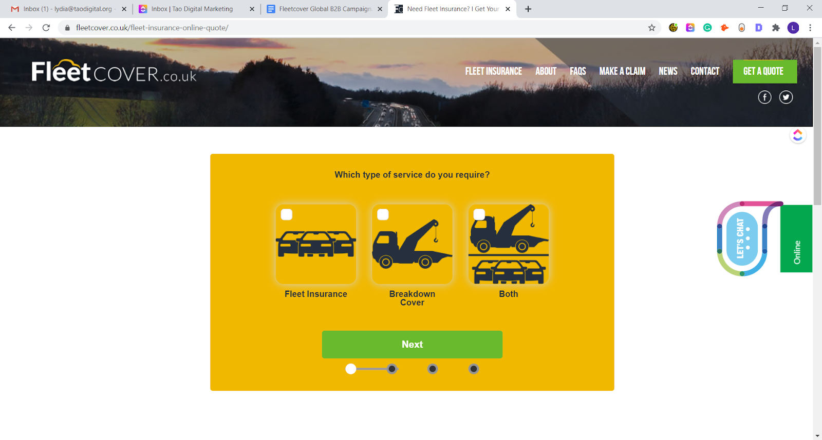 We’ve had great success using multi-step forms on other client’s sites, so we decided to create one for Fleetcover. We had all the questions needed to provide a full quotation, but split it all up into easier-to-digest tabs and user-designed icons, rather than just text.