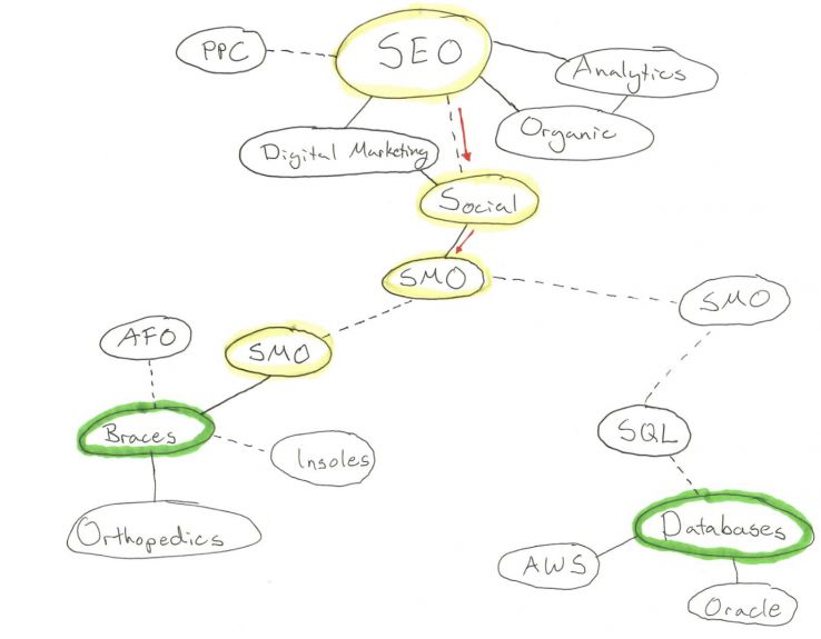 The above topic change occurred through a series of small relational suggestions. A PAA above this screenshot was “What is SMO stands for?” (not a typo, just a neural network doing its best people!) which led to "What is the meaning of SMO?", to “What is a smo brace?” (for ankles).