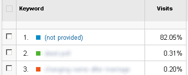 And of course there's also the Search Queries report in Webmaster Tools. This is also useful, but it's still a disappointing loss of information compared to what we used to have (even if I personally think Google was probably right to go ahead with it).