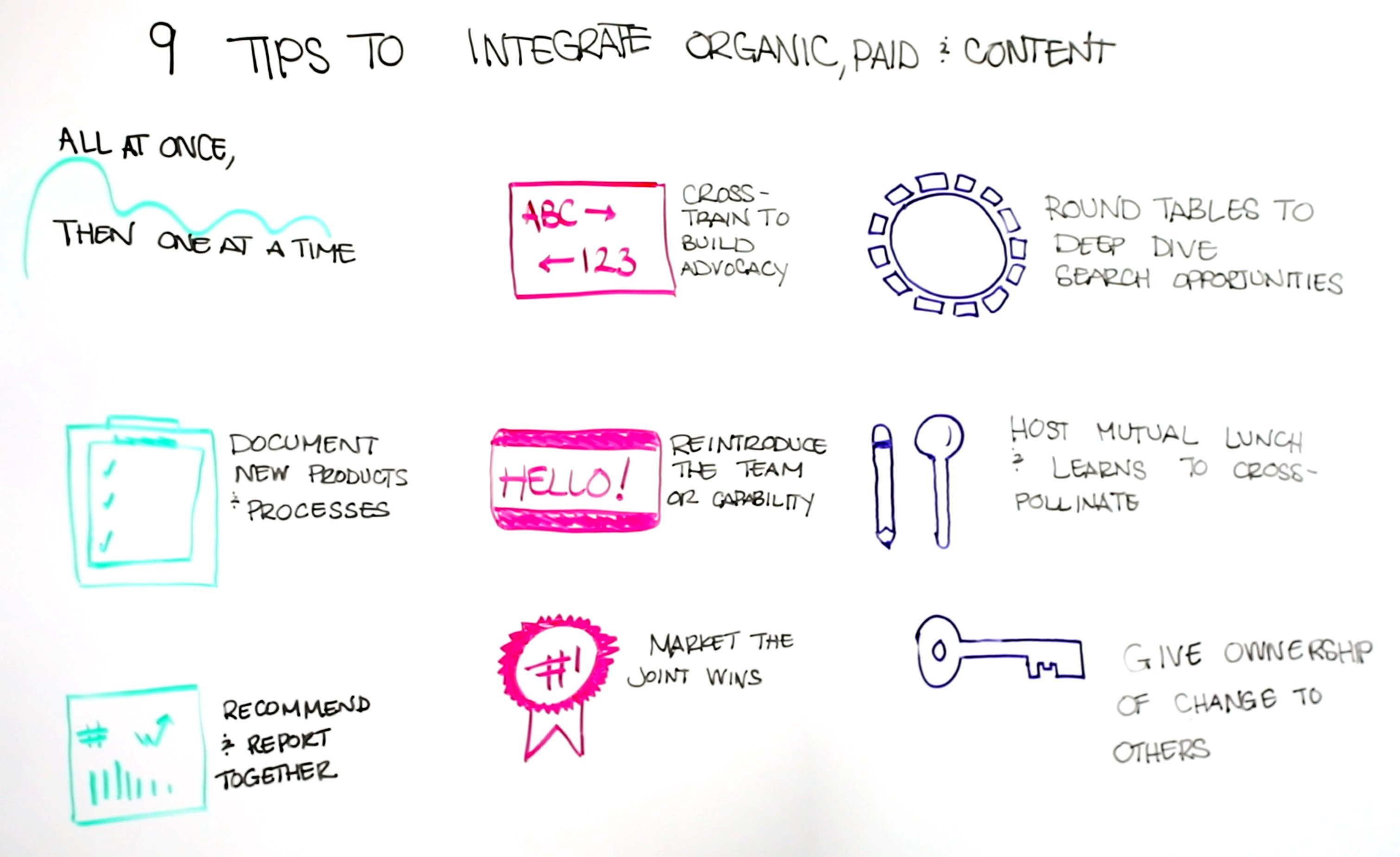 It helps make sure we've considered all the angles and greatly impacts our ability to get buy-in across the team. So those are nine quick tips to integrate organic search, paid search, and content practices. Let us know what you think in the comments below. I want to hear your tips too, and we'll see you next time on Whiteboard Friday.