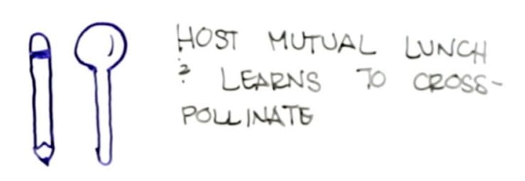 Next, think about hosting mutual lunch and learns so you can start to cross-pollinate different skill sets. So similar to the roundtables, this is where you're going to bring different groups together to talk about capabilities. But think about more than just presenting your capabilities to other people. Also be sure to invite them to present their capabilities to your group. For example, we've invited the project management team or the client engagement team to make us stronger in our search work through the value that they bring.