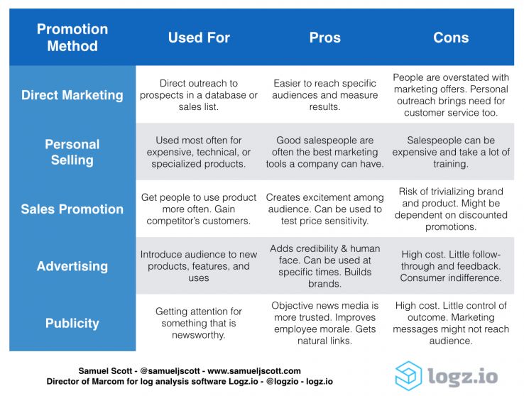 The personal selling is when we sponsor and speak at conferences for DevOps engineers and system administrators; the publicity is when we publish and then publicize informational articles and guides in major publications and on our website. (For example, our CEO, Tomer Levy, wrote about different open-source DevOps tools on DevOps.com, we've published a guide on how to deploy the ELK Stack, and I discussed how to use server log analysis for technical SEO here on Moz.)