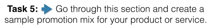 - Determine which online and offline communications channels you will prioritize within your promotion mix and then allocate your resources accordingly