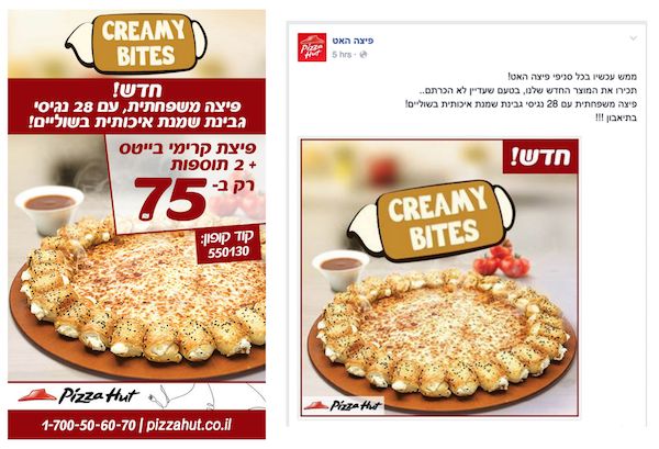 (That's Pizza Hut Israel selling a pizza with a crust made of bite-sized pieces filled with cream cheese.)