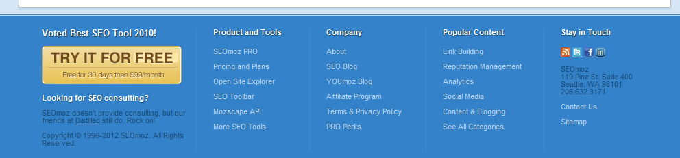 One question I saw a few times was about if we should use sitewide footers at all. My answer to this is "absolutely!" Footer links can be awesome for the user experience. Especially in the growing world of mobile surfing of the Internet, there is an increasing need for good navigation at the bottom of websites that allows users to navigate to a place on the site that makes sense, without necessitating scrolling back to the top of the page.
