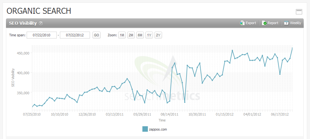 And according to SearchMetrics, their SERP coverage is up and to the right -