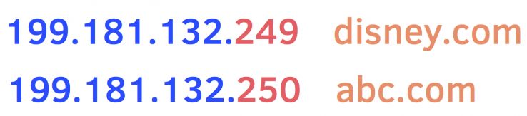 Disney and ABC have a near identical IP address, both in the same C-Block.