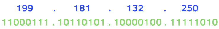 Example IPv4 IP address shown in dot decimal format and as binary.