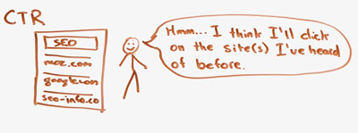 Same story a little bit when it comes to click-through rate. Now, we know from experience and testing that click-through rate is or appears to have a very direct impact on rankings. If lots of people are performing a search and they click on your website in position number four or five, and they're not clicking on position one, two, or three, you can bet that you're going to be moving up those rankings very, very quickly.