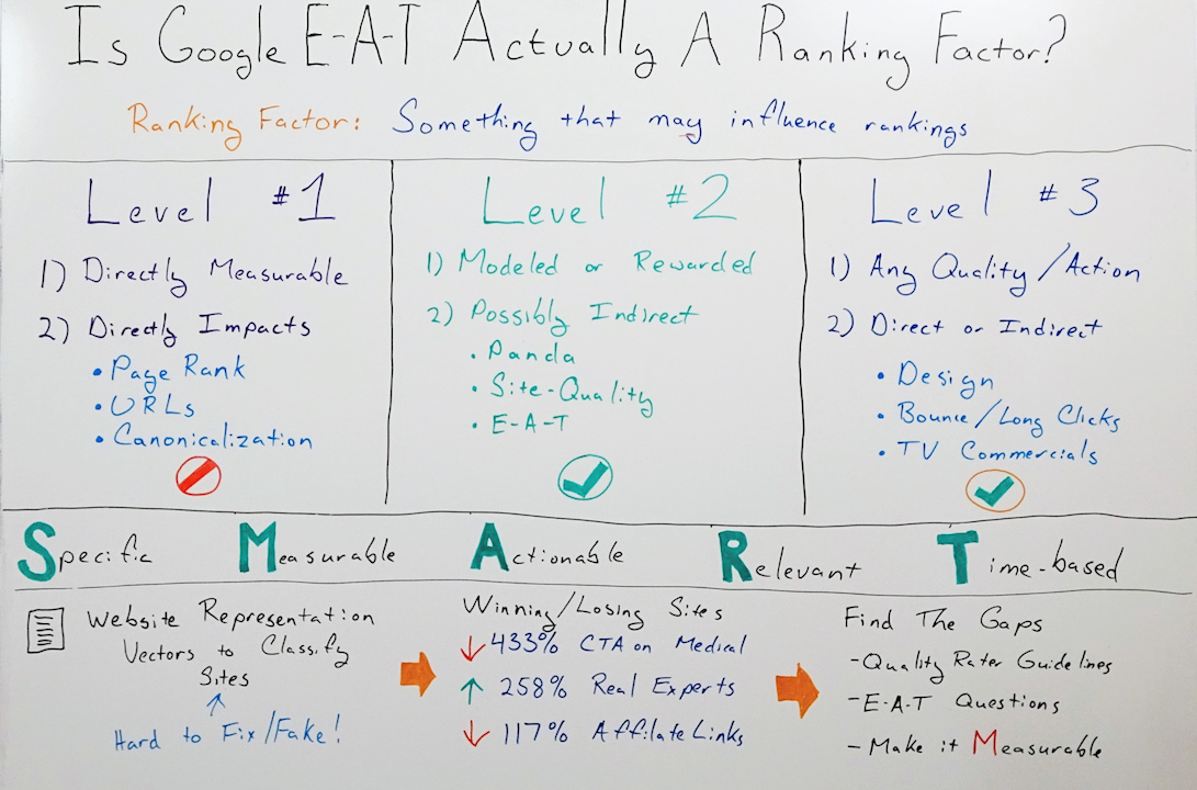 Many SEOs agree that showing expertise, authority, and trustworthiness in your site content is important to ranking well. But why is that, exactly? Is it because Google E-A-T is an actual ranking factor, or is it something else? In this episode of Whiteboard Friday, Cyrus Shepard explores whether it can be considered a true ranking factor, making your E-A-T goals SMART, and how to communicate it all to curious stakeholders.