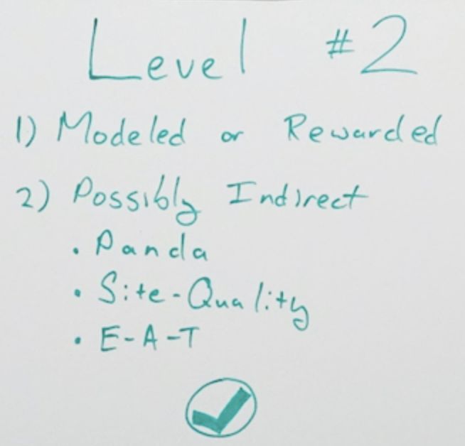 Instead of giving the algorithm direct signals, they told the machine learning program, "Find us more sites like this. We want to reward these sites." So in this bucket, ranking factors are things that are modeled or rewarded. People in this school of thought say, "Let's just go after the same thing Googlers are going after because we know those things tend to work."