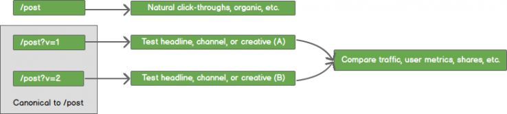 You can test different design elements as they relate to sharing by creating posts and pages with a page-level variable and a canonical tag back to the original post. Always test URLs with variables against other URLs with variables to account for site owners manually removing them. This setup may also be useful for testing different content promotion channels and methods.